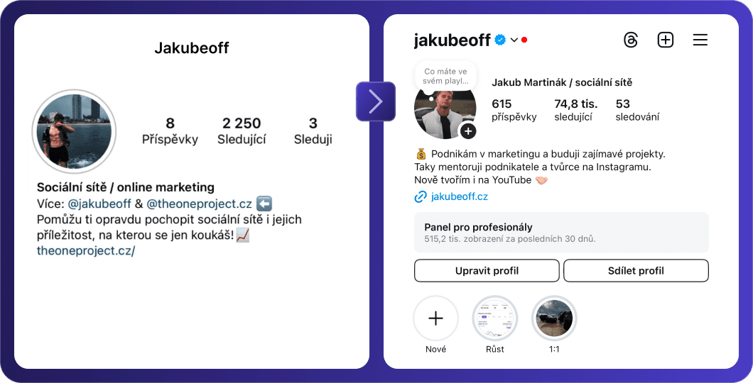 Jakub pomohl za poslední roky lidem získat již více než 7 000 000 sledujících a vybudoval díky osobní značce, Instagramu a dalším platformám milionové projekty.